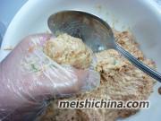 3. 用手挤出一个个的肉丸。
