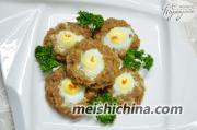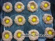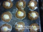 5. 把鹌鹑蛋打开放入肉窝中。