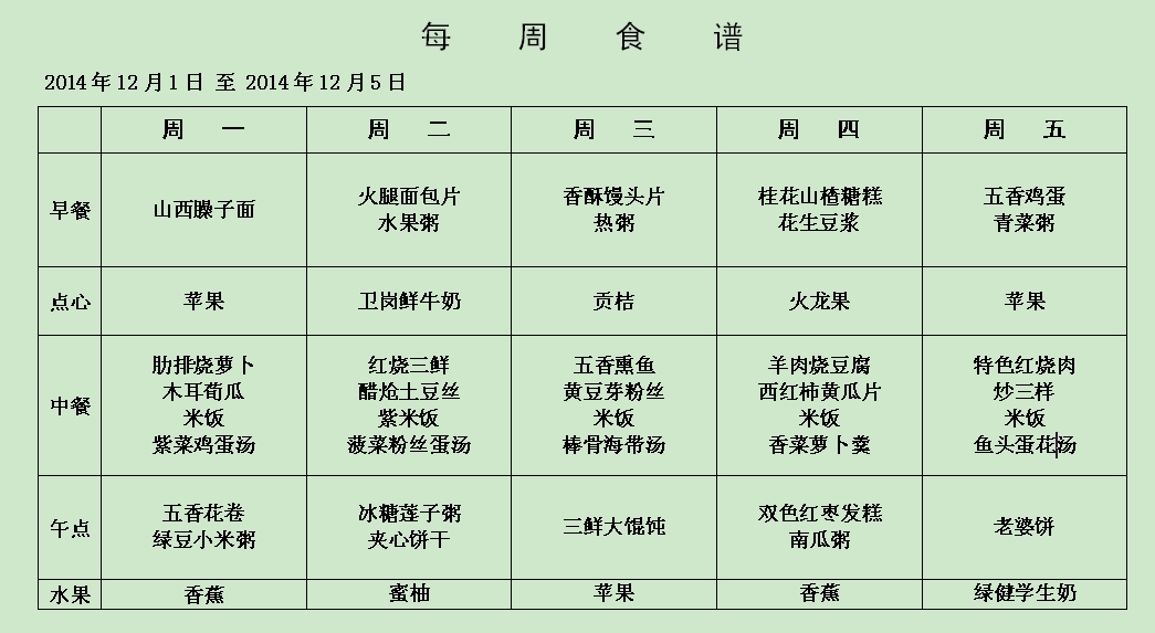 每周食谱