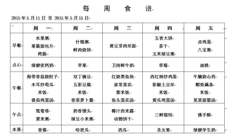 您现在的位置是:徐州市第一实验幼儿园 > 第十一周食谱