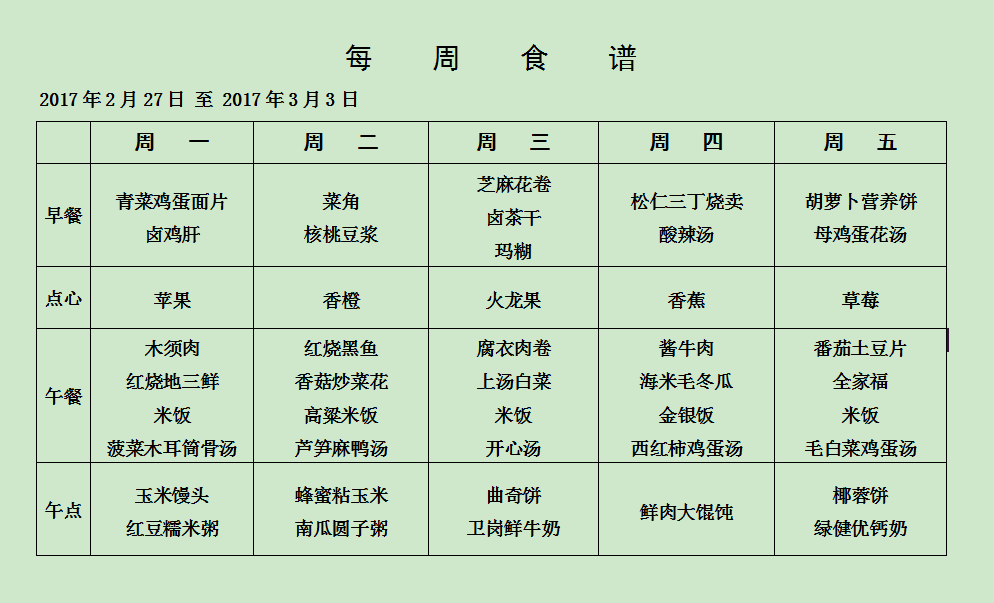 您现在的位置是:徐州市第一实验幼儿园 > 第三周食谱
