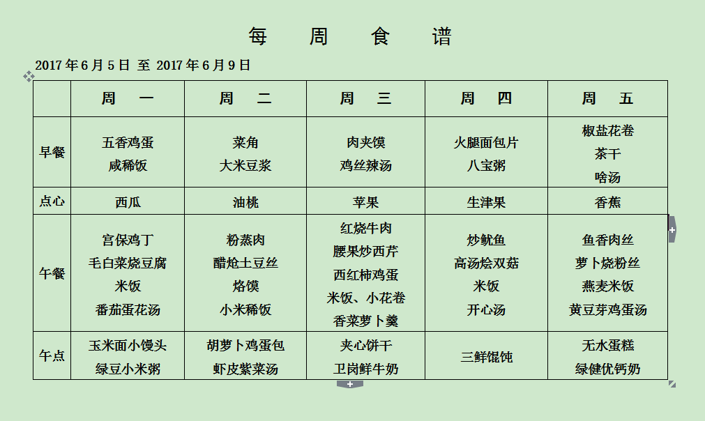 您现在的位置是:徐州市第一实验幼儿园 > 第十七周食谱