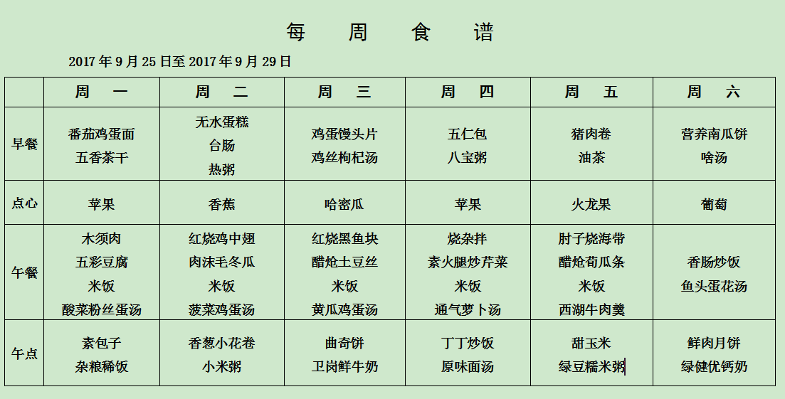 您现在的位置是:徐州市第一实验幼儿园 > 第五周食谱