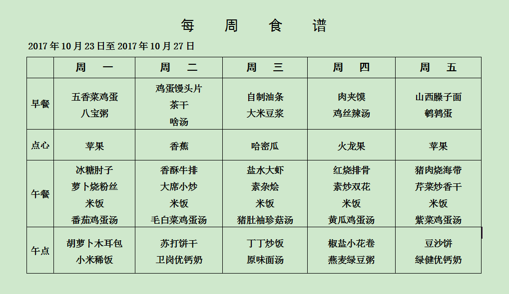 您现在的位置是:徐州市第一实验幼儿园 > 第十周食谱