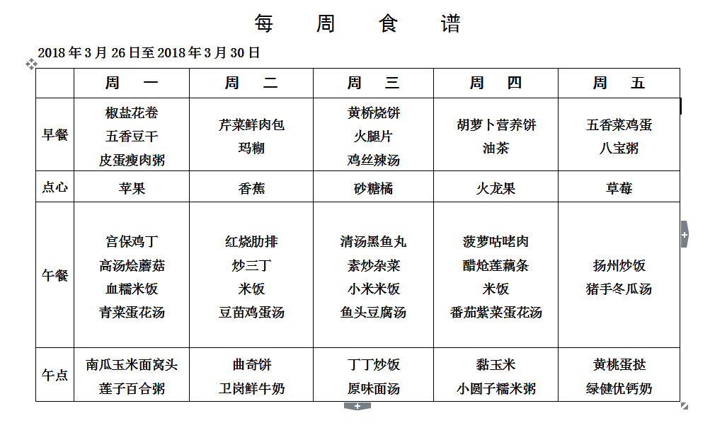 每周食谱