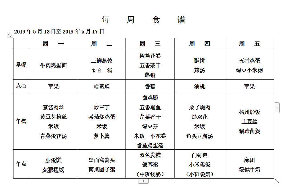 第十三周食谱(2019年5月13日——5月17日)