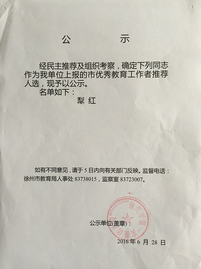 徐州市优秀教育工作者推荐人选公示