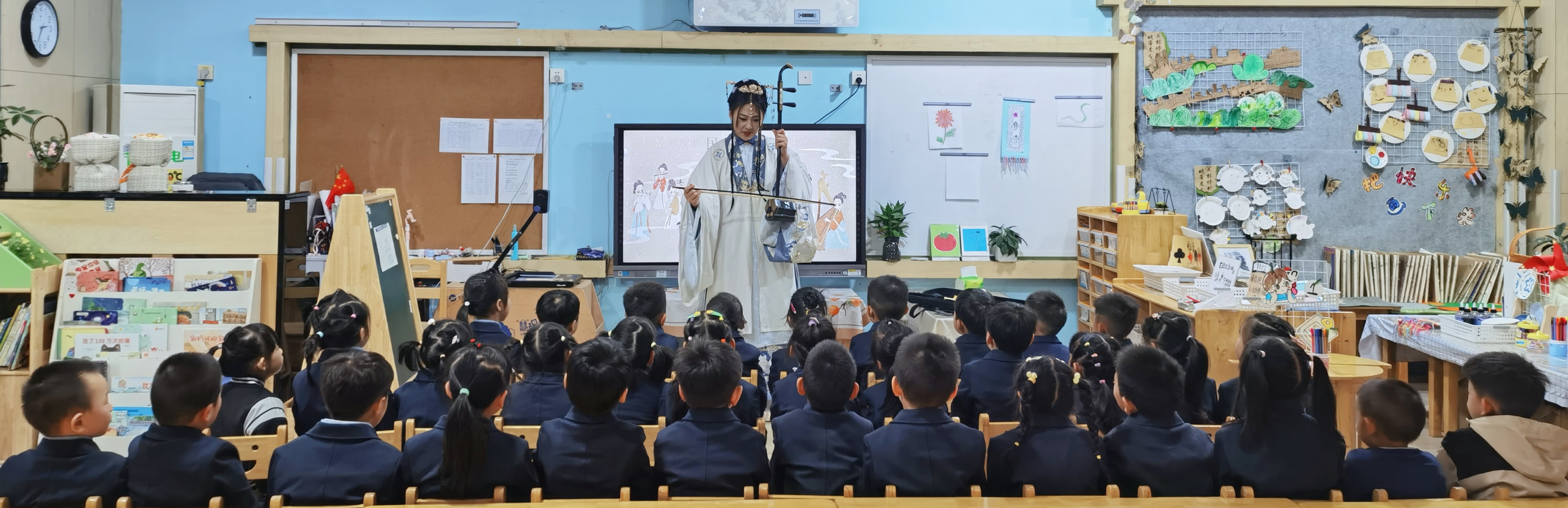 为满足幼儿对民族乐器的好奇,婉瑜妈妈带来了常见的民族乐器——二胡。二胡是中国传统拉弦乐器,也是中华民族乐器家族中主要的弓弦乐器之一。为感受二胡特有的声音,婉瑜妈妈现场为幼儿独奏一曲《赛马》。琴弓一拉响,幼儿纷纷发出惊叹声,悠扬的旋律在耳边回荡,让人回味无穷。曲毕,幼儿纷纷拍手喝彩,流露出对二胡的喜爱之情。