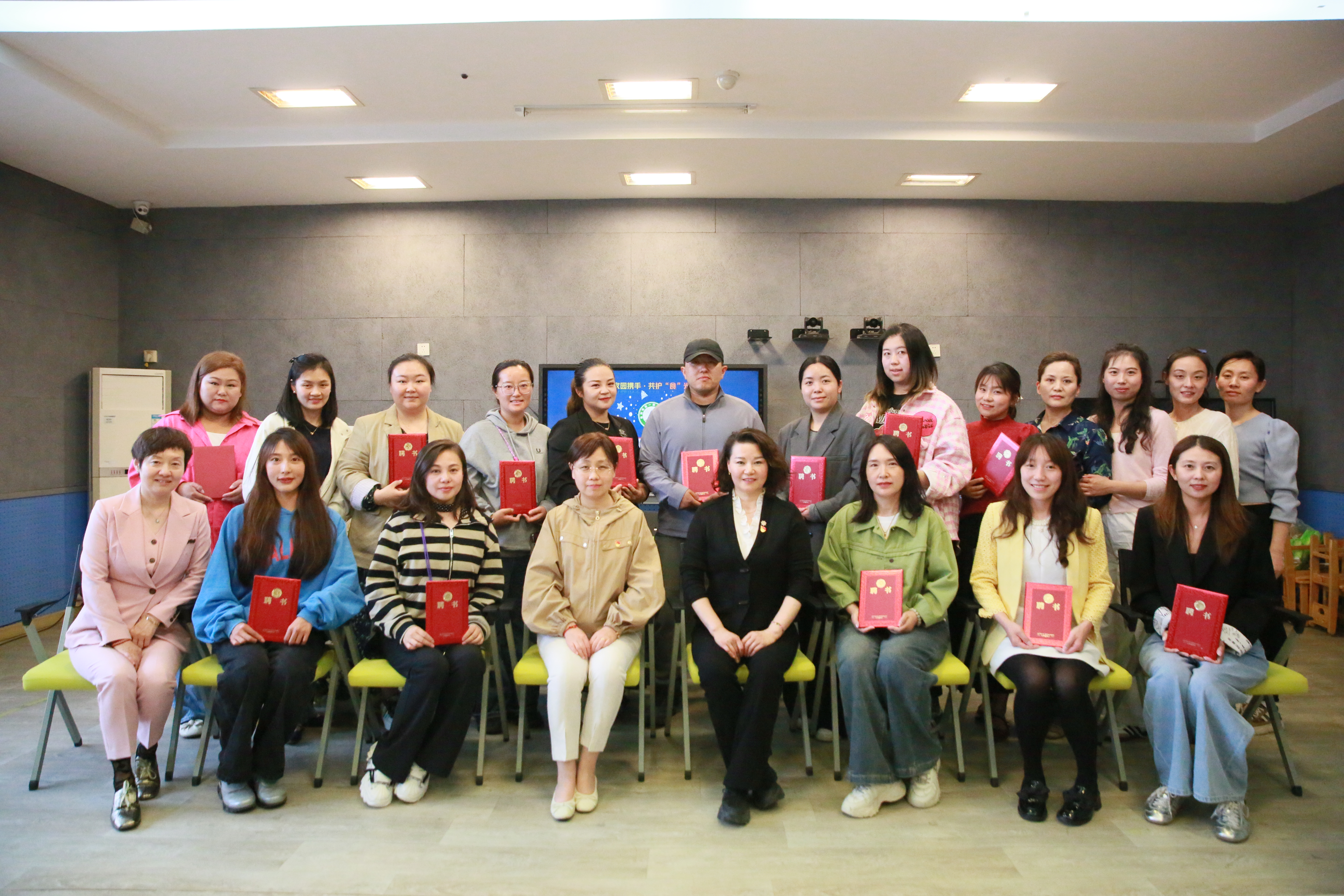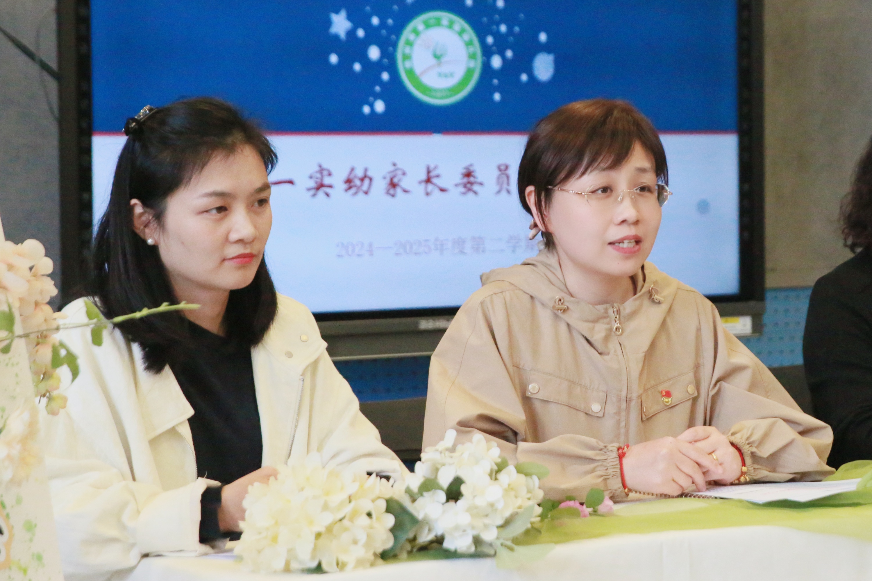 致辞结束后,方红娣园长、谭淑婷园长共同为第一届膳食管理委员会、膳食监督委员会委员颁发聘书。这份承载着信任与责任的聘书,标志着家园共管膳食的崭新模式正式启动。随后,谭淑婷园长细致解读了膳委会工作细则,保健老师陈老师宣读了幼儿园膳食监督家长委员会职责,赵老师则从专业视角,全面分享了幼儿园营养膳食工作开展情况,让家长们对幼儿在园饮食有了更直观、更深入的认识。