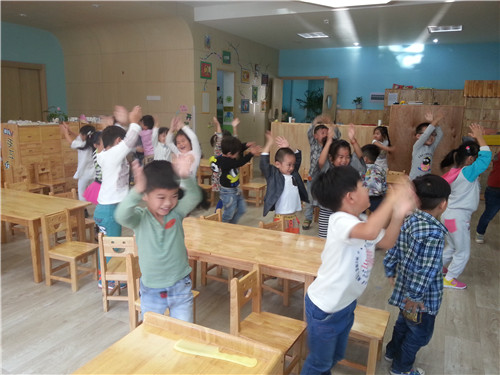瞧!我们的舞姿美吗?我们在幼儿园好开心呀!