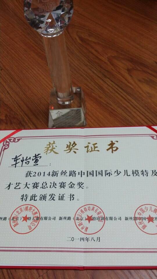 车怡萱小朋友喜获“2014新丝路中国国际少儿模特及才艺大赛总决赛金奖”